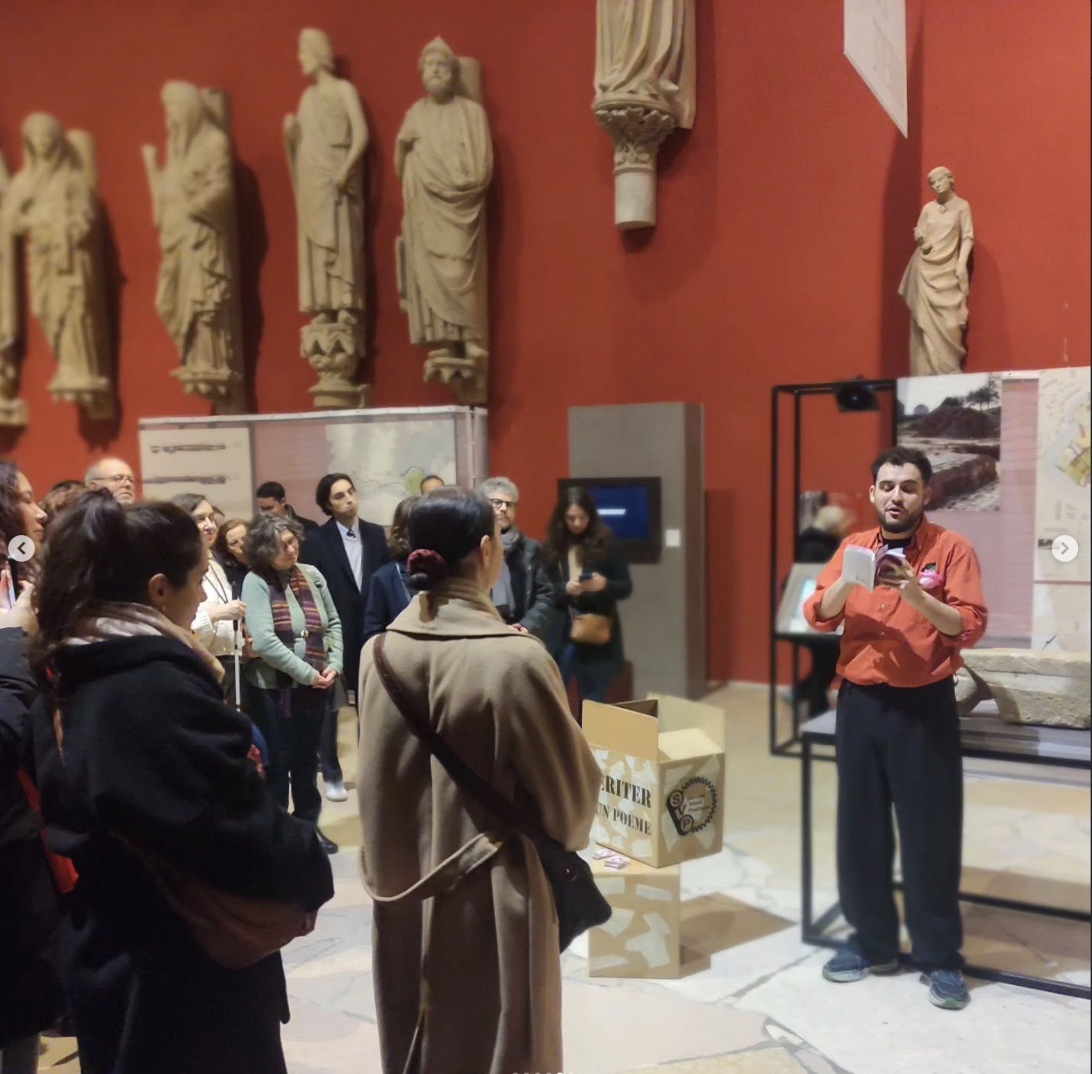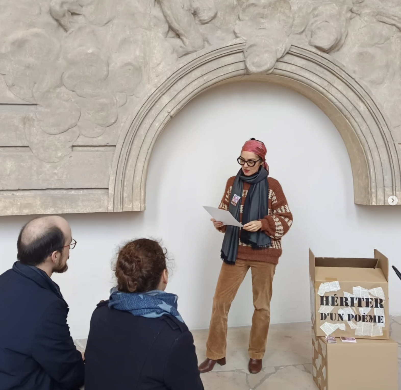 A l’occasion des nuits de la lecture 2025, le SVP, en la personne de Julien Bucci, a invité quelques un·es des poètes·ses de cette édition à performer dans des lieux culturels chargés d’histoire. Le public était invité à tirer un premier dé pour choisir le “tiroir” du serveur vocal et un deuxième dé pour déclencher le poème concerné. Tels de vrais juke-box poétiques, les poètes·ses ont ainsi parcouru l’anthologie du SVP en réponse aux envies du public et aux hasards du sort, mâtinant leur lecture, pour la Maison Victor Hugo, de poèmes hugoliens qui résonnaient avec un tableau de la pièce où chacun·e se situait.
